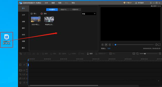 选择好画面比例后,添加文件。我们可以直接把文件拖拽到素材库里,也可以点击导入键添加,大家怎么方便就怎么来。