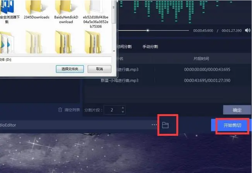 界面会有很多歌你剪切的片段,这个时候他们已经在剪切中了,我们看到剪切完成的时候就可以查看文件了,就在你刚才保存位置的里面哦!